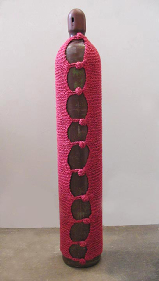 Gas Tank Cozy, 2004, hand knitted